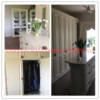 We custom design and make dressing room, walk-in-robe, wardrobes, vanities, L'dry, booksheleves, entertainment units, seating nooks and other jonieries. Here are some examples of what we did.